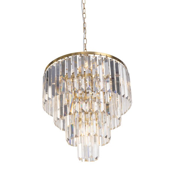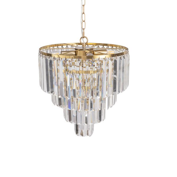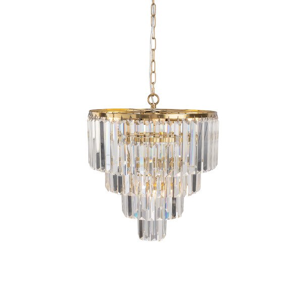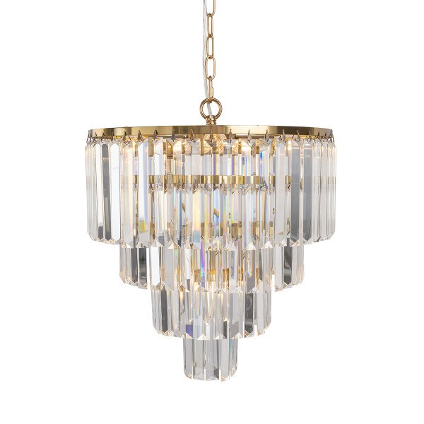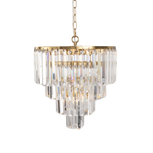 Celestial 39cm 5 Light 4 Tier Crystal Glass Chandelier Satin Brass