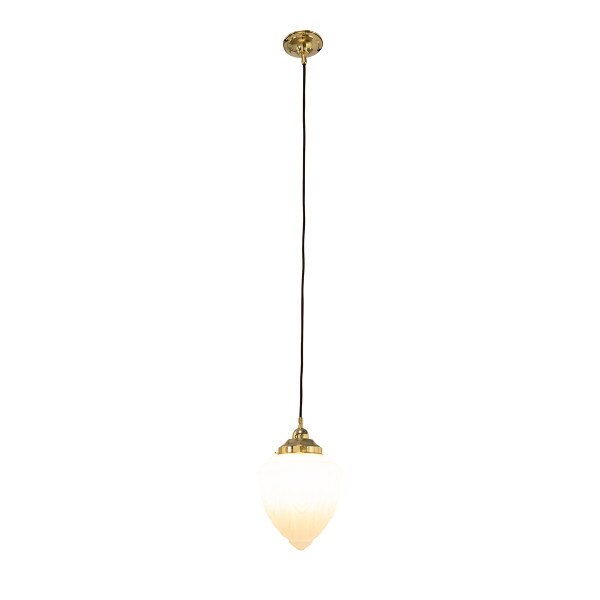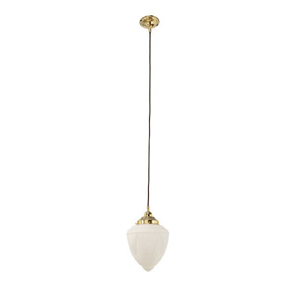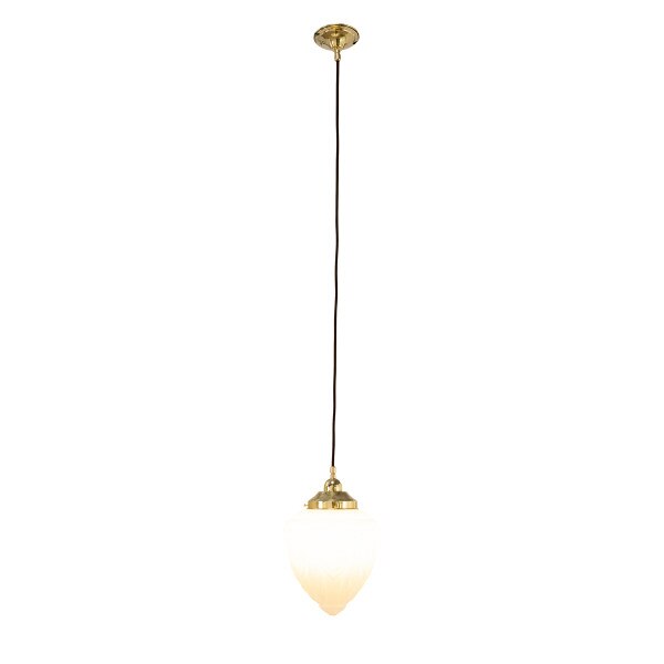 The Empire 14'' Opal Matte on 3 Chain Suspension Polished Brass combines the best of heritage lighting with the elegance of Art Deco design, exuding timeless sophistication. The classic glass shade, adorned with a stylish geometric pattern, brings vintage charm to bedrooms, hallways, bathrooms or living areas. Suspended by a three-chain fitting crafted from high-quality solid brass, it offers warm ambient lighting while enhancing traditional interiors with its refined and enduring style.