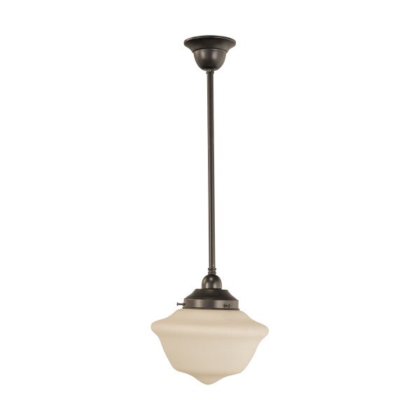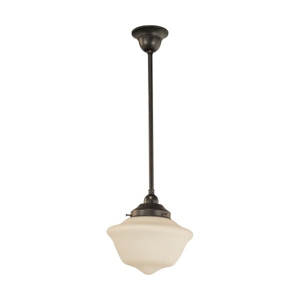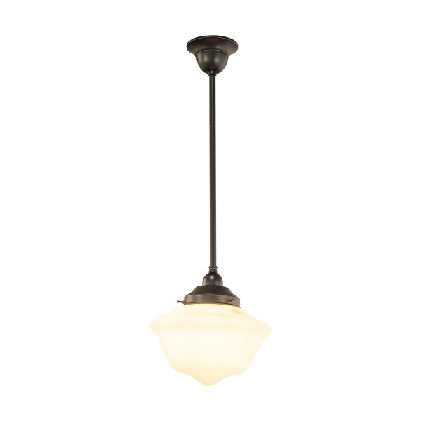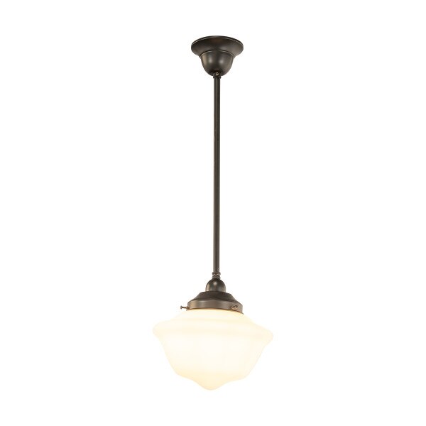 The Victorian Schoolhouse 9'' Opal Matte on Rod Set 1/2'' x 1/2m Patina offers a refined lighting solution that blends vintage appeal with everyday functionality. Featuring a gracefully contoured opal gloss glass shade, it casts a soft, ambient glow—ideal for creating a warm and inviting setting. Well-suited for spaces like hallways, kitchens, dining rooms, as well as bars and cafés. The durable brass construction ensures lasting performance while adding a touch of sophistication, making it a perfect fit for traditional and heritage-inspired interiors.